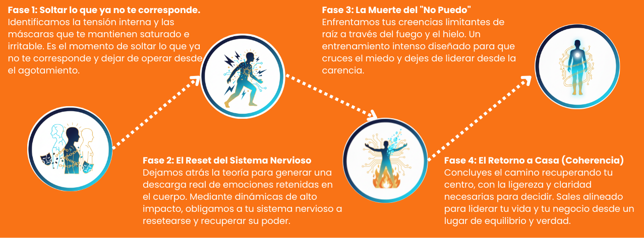 Lo que ves no es solo gente en el hielo o el fuego; es el sonido del silencio mental y la ligereza de quien por fin soltó lo que ya no le correspondía. Nuestros asistentes no salen 'motivados', salen alineados: con la claridad para decidir, la energía real para ejecutar y la paz interna necesaria para liderar su vida y su negocio desde un lugar de verdad. El cuerpo ya cobró la factura, hoy es el día de pagarle con un nuevo comienzo.