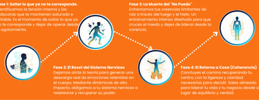 El cambio no empieza en la mente, empieza en el cuerpo. Fuego, agua, aire y tierra activan procesos físicos reales que liberan carga emocional, regulan el sistema nervioso y permiten integrar el cambio en la vida diaria.