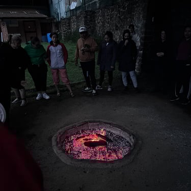 Caminata sobre brasas como acto simbólico y físico de ruptura de límites. El cuerpo aprende que el miedo no manda y que la decisión nace desde dentro